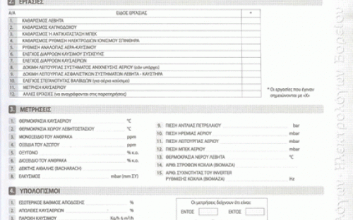- μετριέται ο βαθμός απόδοσης και οι υπόλοιποι ρύποι και καταγράφονται σε επίσημο φύλλο συντήρησης